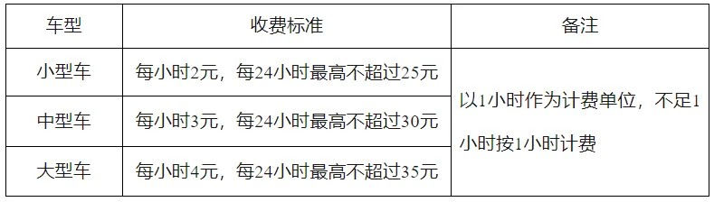 停車時間不超過1小時(含)不收費,新能源汽車不超過2小時(含)不收費,超過免費時長后: